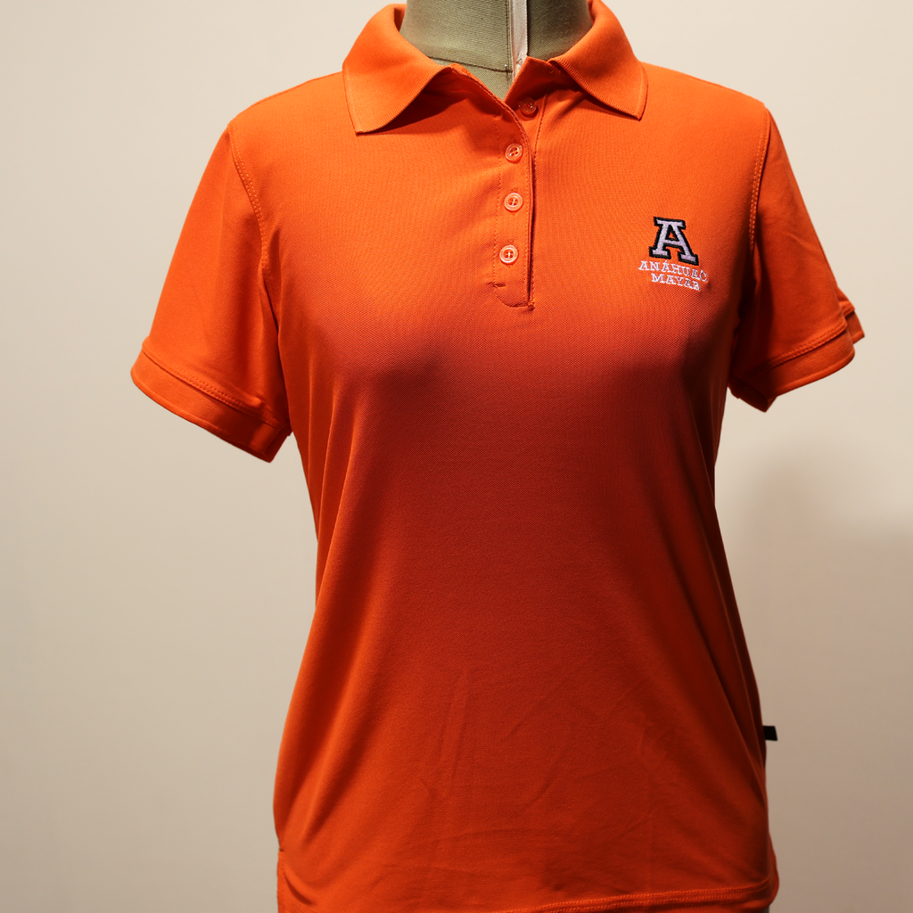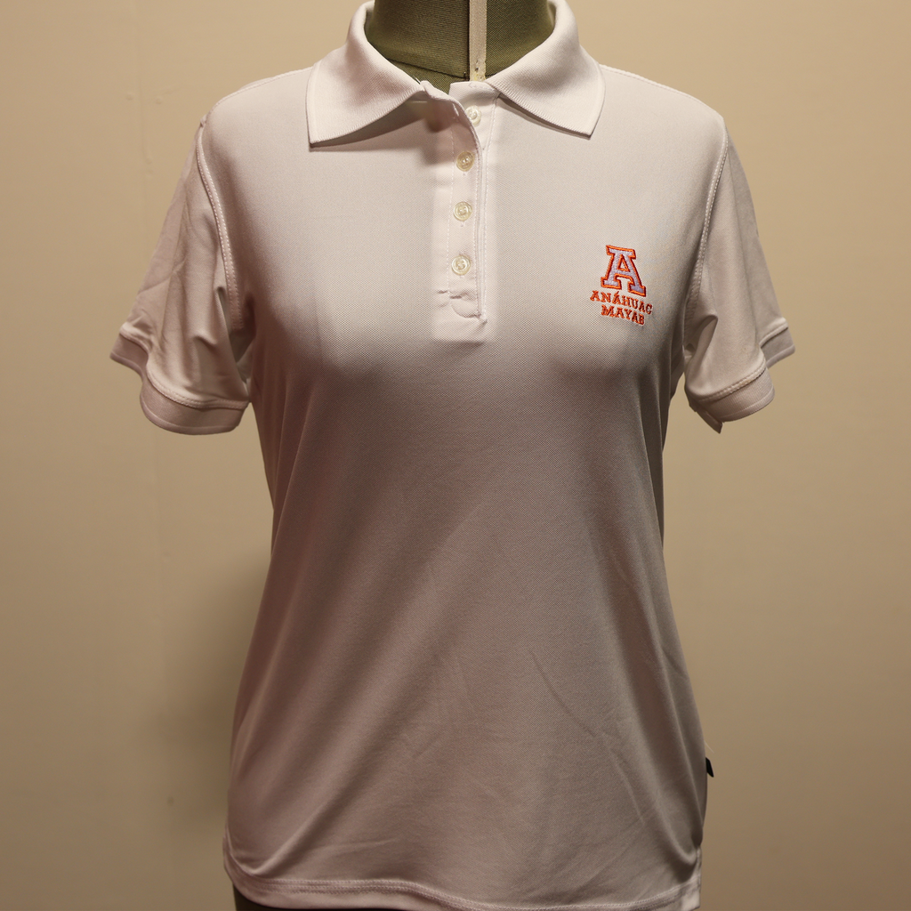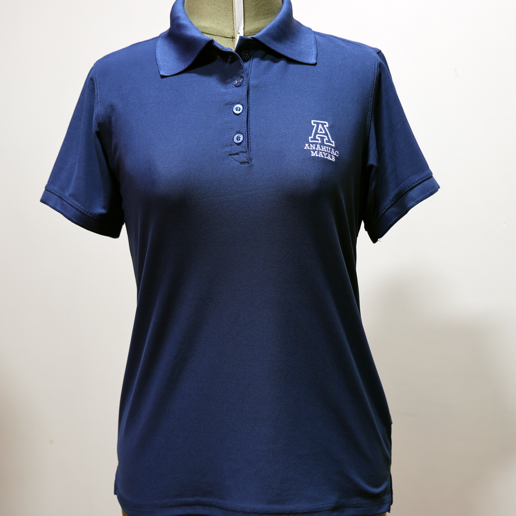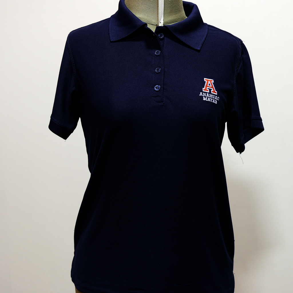 Playera tipo Polo con una "A" y la leyenda "Anáhuac Mayab" bordada al frente. Disponible en varios colores: naranja, azul, gris, negra y blanca.